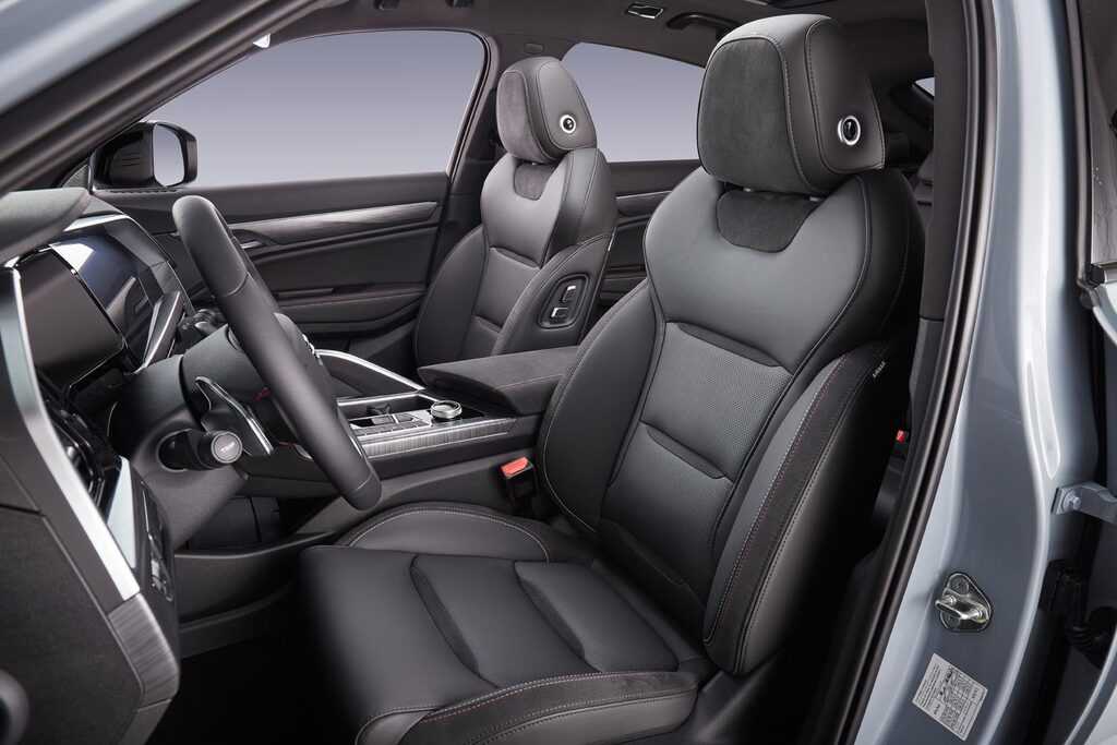 Материалы отделки салона тоже отличают его от прочих китайских моделей. Здесь кожаные сидения в базовой комплектации, кожаный руль, мягкий пластик на дверных картах и опциональный черный потолок в комплектации Flagship Sport.