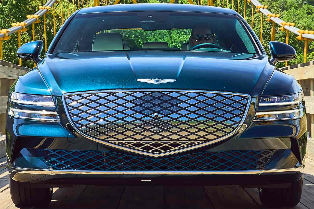The 2024 Genesis Electrified G80 will feature a unique faux front grille that highlights its eco-friendliness and encloses the charging lid. Image Source: Genesis