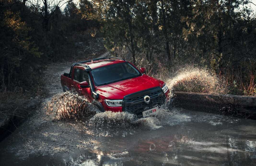 По габаритам — это среднеразмерный пикап, который, к слову, не намного крупнее HiLux, тем не менее, его грузовая площадка меньше. В длину пикап вытянулся на 5410 мм, его ширина и высота равны 1934 и 1886 мм соответственно. Колесная база — 3230 мм, в то время как у HiLux колесная база вытянута лишь на 3085 мм. Так что можно говорить о том, что в салоне Poer несколько просторнее, чем в пикапе от Toyota.