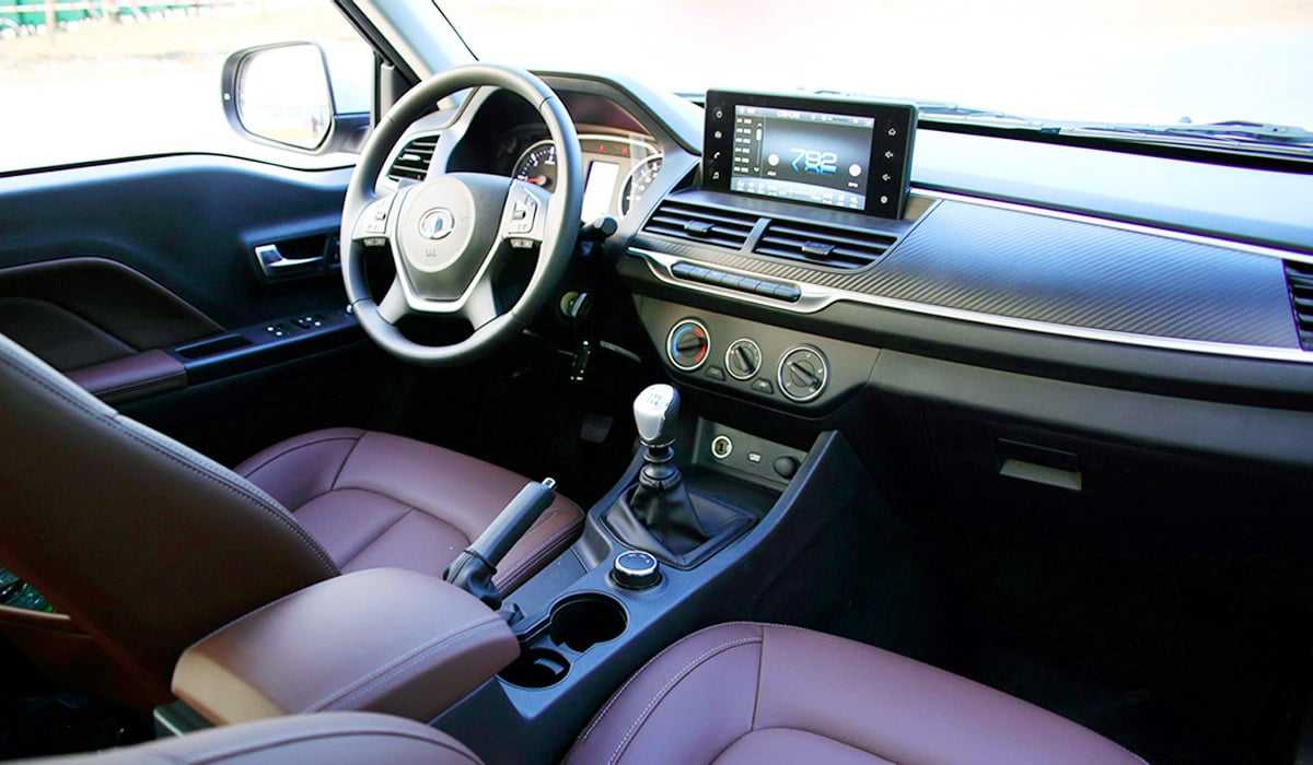 Интерьер пикапа хотя и не имеет массы современных решений, исполнен достаточно качественно и надежно. В перечне доступных функций можно отметить установку сенсорного дисплея управления системой мультимедиа, который располагается в верхней части консоли автомобиля. Блок управления климатическими возможностями пикапа представлен стандартными селекторами-крутилками. Центральный тоннель получил стандартный рычаг управления механической трансмиссией, селектор регулировок режимов настройки ходовой части, подстаканники и механический «ручник», а также разделительный подлокотник.