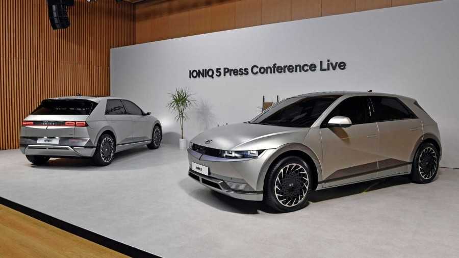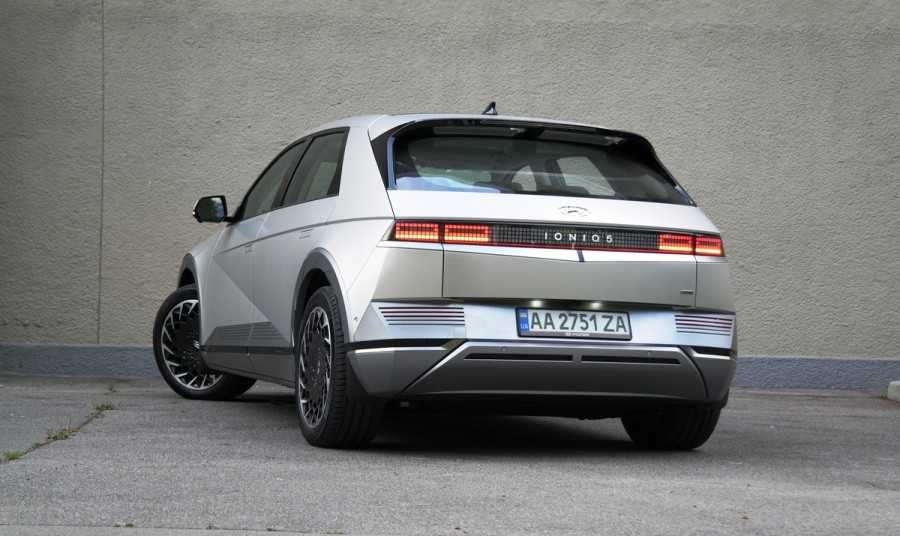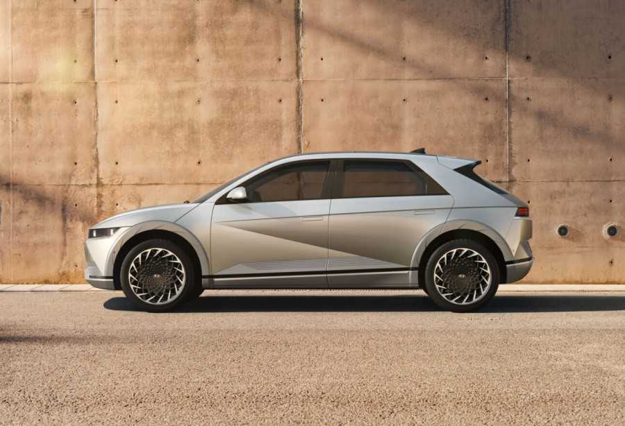 Со стороны может показаться, что IONIQ 5 относится к компактным хэтчам С-класса. Однако реально, он крупный и имеет схожесть с кроссоверами: высокая крыша, «катки» на 20” и защитные накладки. Вдобавок, не маленькая база в 3000 мм и куцые свесы. Угловатый стиль Айоника не случаен, ведь он наследует внешний вид концепткара Hyundai 45, которым марка отметила 45-летие модели Pony.