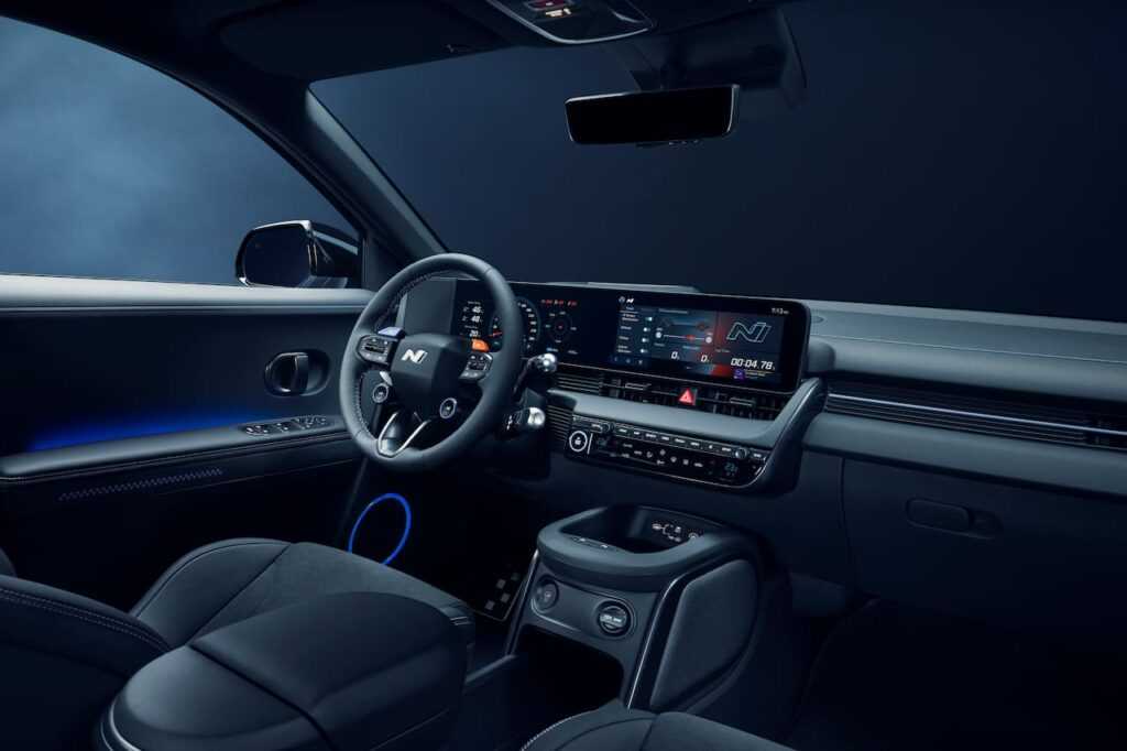 The Hyundai Ioniq 5 N features an all-black interior, a new steering wheel, and a revised center console. Image Source: Hyundai Motor Group