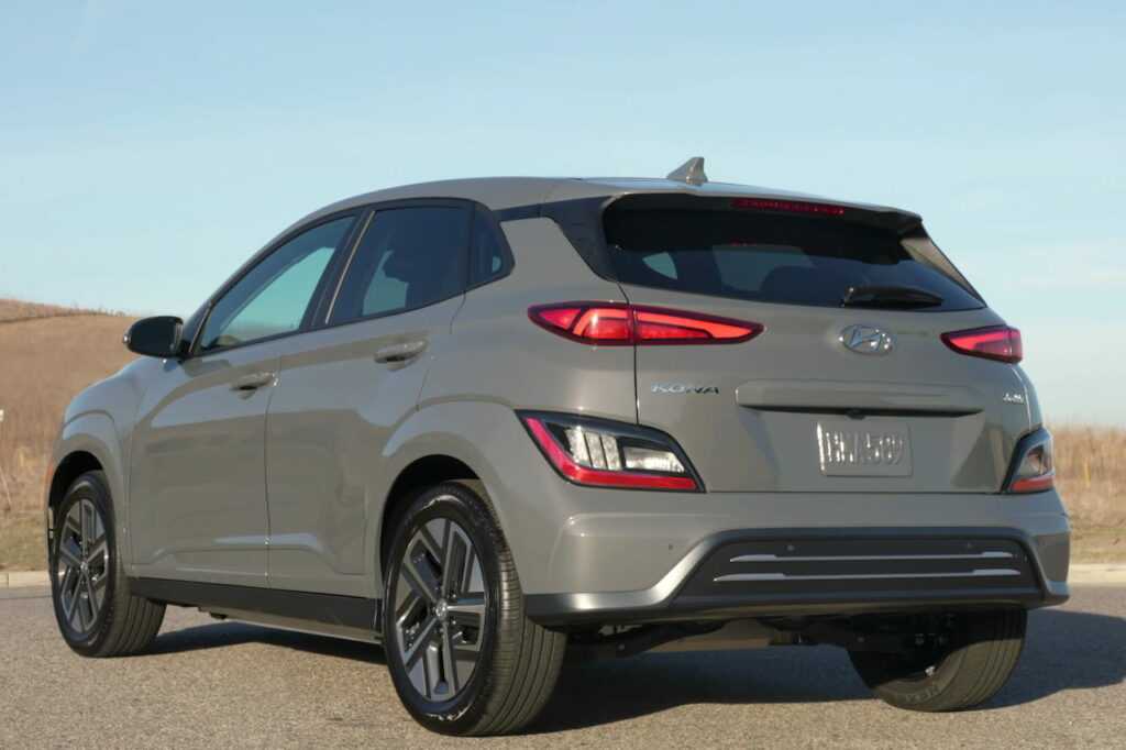 At the rear, the Kona EV received a slightly more aggressive LED taillight and bigger and sharper combination lamps that include new LED turn indicators (instead of PY21W halogen bulbs) split into three vertical bars and wider reverse light. Also new with the minor refresh were the satin accent bars on the bumper. These have also safely made it to the 2023 model.