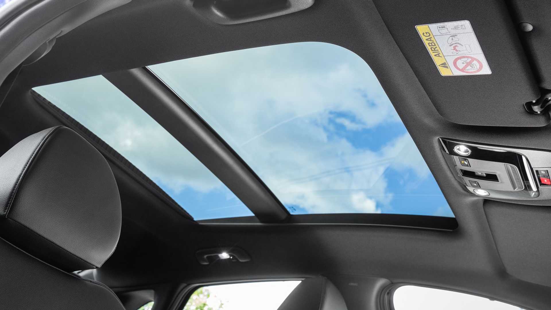 Сзади имеем комфортабельный диван с откидным подлокотником и подогревом (в ряде комплектаций), а также дефлекторы вентиляции и две USB-зарядки. Что же касается простора, добавился объем перед коленями, но чуть уменьшился над головой – это плата за модную покатую крышу с панорамным остеклением.