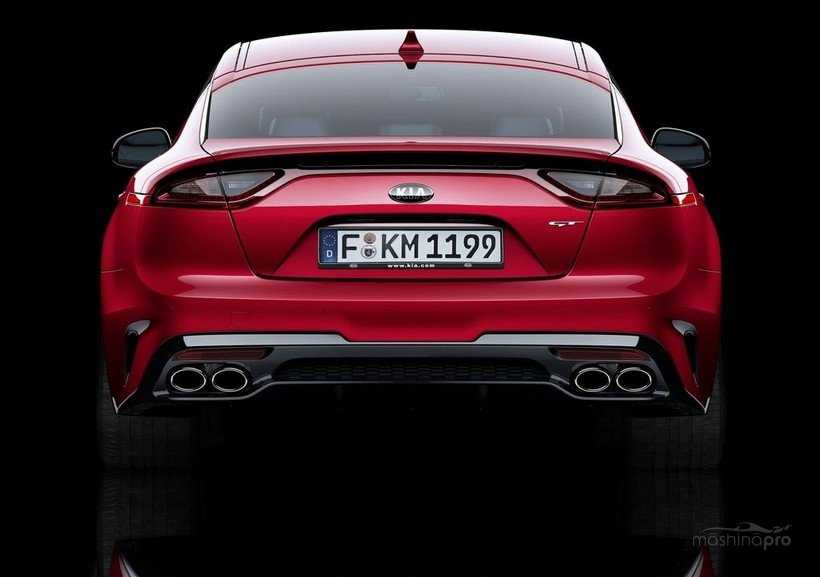 Купив Kia Stinger 2017 в России (цена для нашего рынка пока неизвестна), владельцы будут довольны и необычным дизайном задней части кузова, где располагается компактная крышка багажного отделения, спортивный спойлер, тонированные фонари и выхлопные трубы с хромированными накладками.