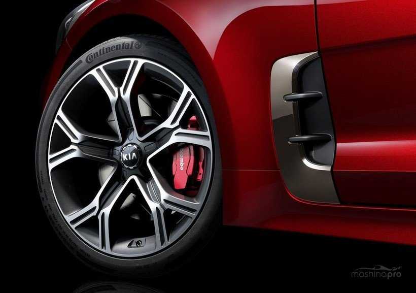 У новой модели Киа Стингер красивый вид и сбоку. Рельефные арки, затейливые колесные диски, вытянутый капот и кабина, сдвинутая назад, придают спорткару стремительность. В «базе» предлагаются колеса R17/18, в топовой версии – R19. Внешние зеркала выполнены из глянца (полированный пластик) и оснащены повторителями поворотника. Внизу можно заметить выштамповочную линию с воздухозаборником. Его предназначение – отвод из отсека двигателя и тормозных дисков горячего воздуха. Линия крыши покатая и она плавно переходит в багажник, хвост которого еле заметен.