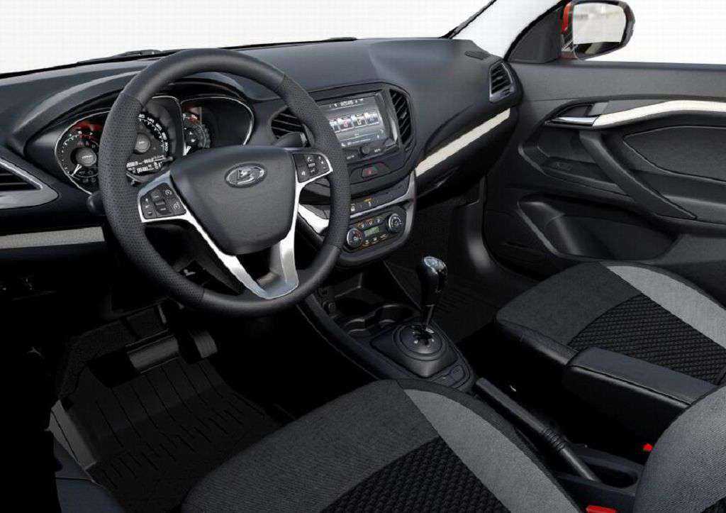 Отделанный мягким пластиком руль нового дизайна с 3-мя спицами и удобными подрулевыми переключателями может регулироваться по вылету и высоте. В центральной его части красуется логотип производителя Lada.