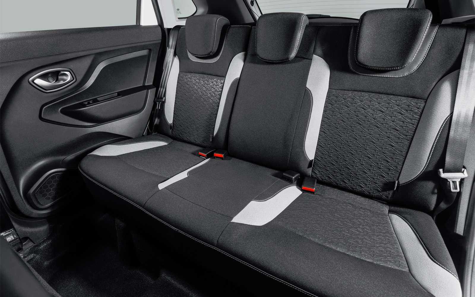 Салон внутри отделан текстурными пластиками, обивка сидений – ткань, в салоне много различных мест для хранения мелких вещей: карманы, бокс под пассажирским сиденьем, подстаканники и пр.