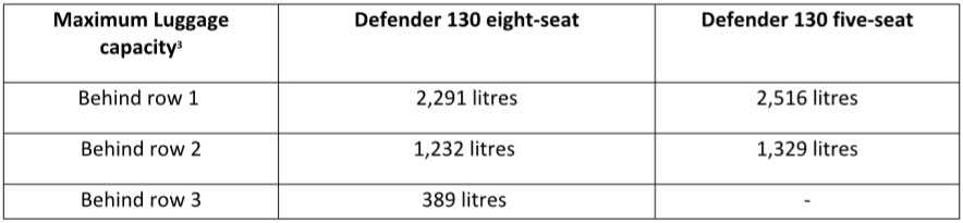 Те, кто просто хочет больше грузового пространства, могут купить Defender 130 в пятиместной конфигурации. В этом случае грузовое пространство увеличивается до внушительных 46,9 кубических футов.