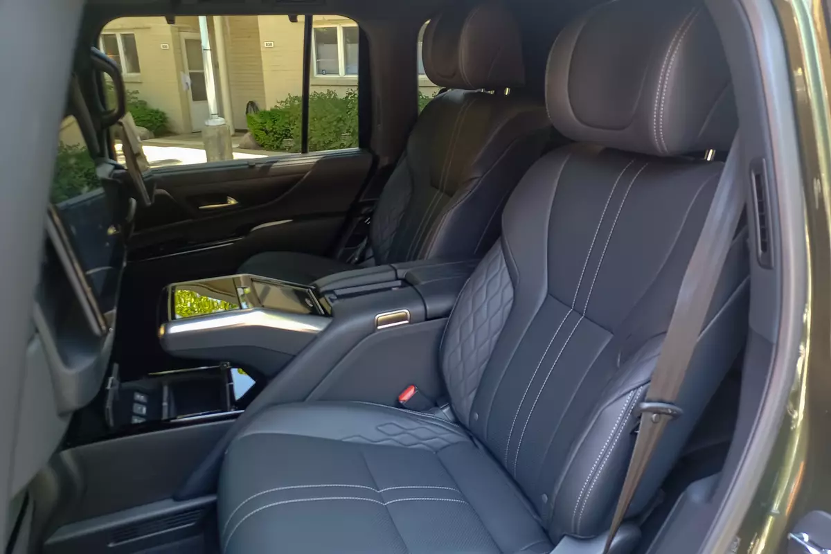Передние кресла LX 600 прекрасны, мягки и удобны, хотя второй ряд не такой приятный, он заметно плотнее.