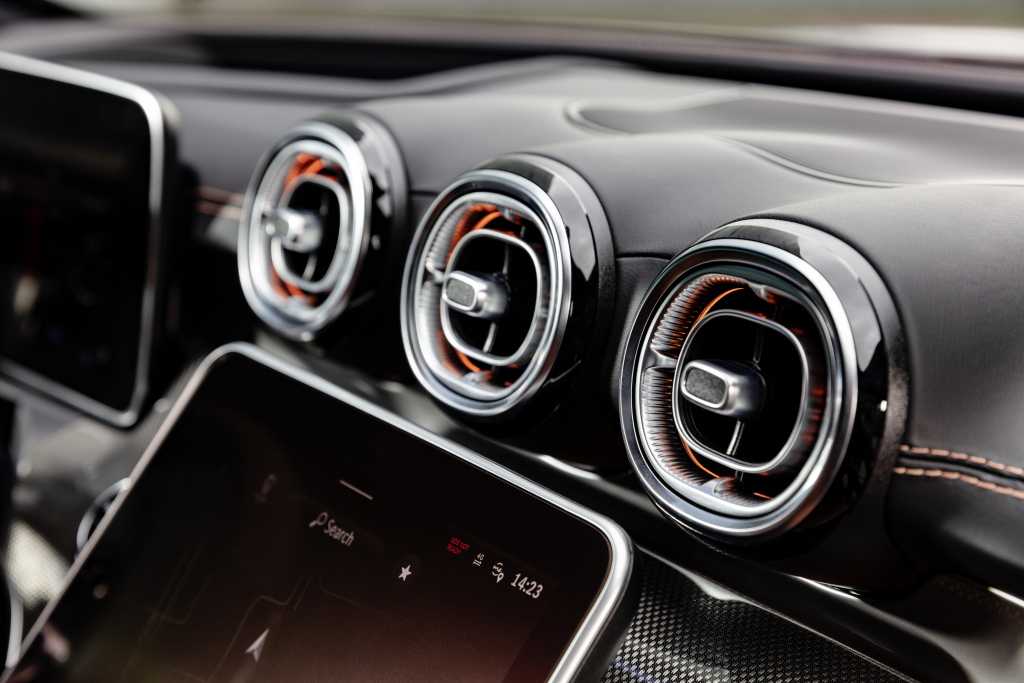 Центральная консоль обновленного Mercedes-Benz C-Class 4 поколения обладает 10.25-дюймовым дисплеем развлекательного и навигационного центра, который поддерживает функцию голосового управления LINGUATRONIC, Apple CarPlay и Android Auto. Ниже 3-х круглых дефлекторов разместилась линия джойстиков регулировки раздельного «климата».