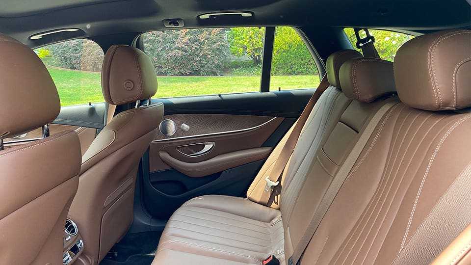 The E 450 All-Terrain station wagon gets more rear headroom than the E-Class sedans, but both are a little tight on legroom by midsize luxury car standards. Mike Hagerty