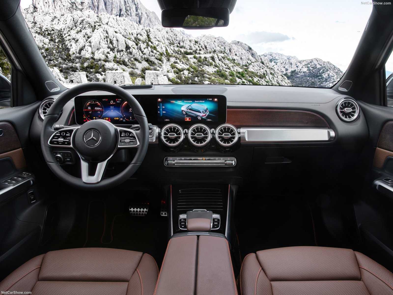В качестве опции можно приобрести адаптивный круиз-контроль, который обеспечивает автоматическое подруливание на скоростях, не превышающих 210 км/ч. Эта система срабатывает даже в отсутствии дорожной разметки при условии, если автомобиль не ускоряется свыше 130 км/ч. В базовой комплектации устанавливаются 2 дисплея диагональю 7 дюймов, один из которых выполняет роль приборной панели. За доплату производитель внедрит 10-дюймовый сенсорный экран мультимедийной системы. В самых дорогих исполнениях Mercedes GLB 2020 оснащается аналогичным по размеру дисплеем, размещенным в месте установки приборной панели.