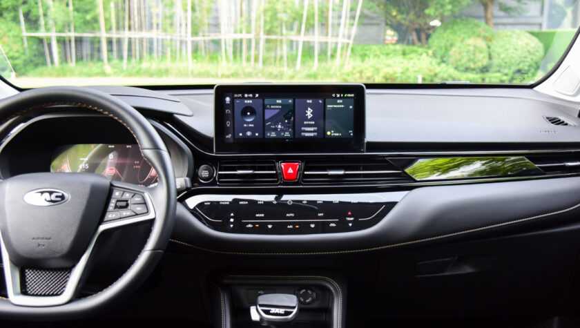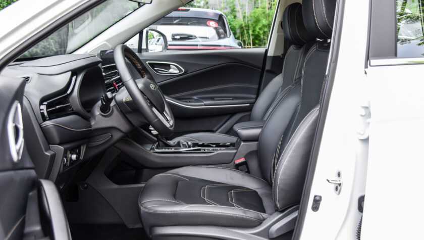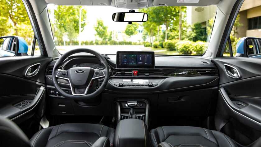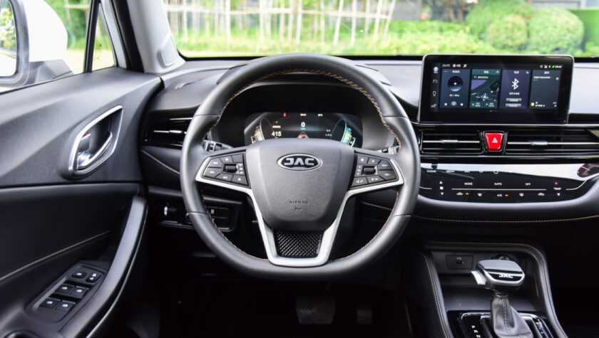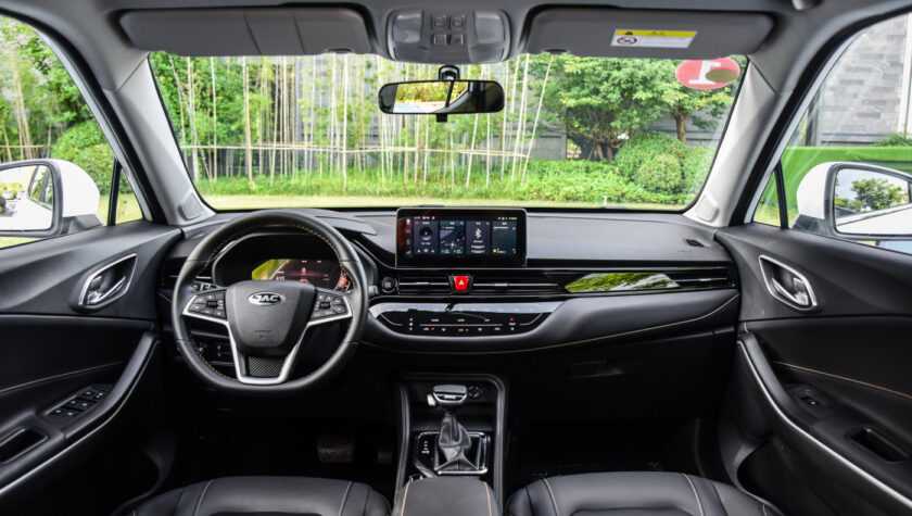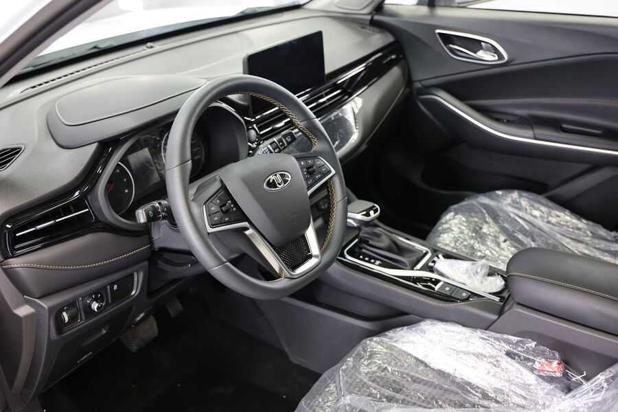 Внутри машины использован незатейливый дизайн передней панели с крупным мультирулем и торчащим по центру консоли дисплеем. В самой дорогой комплектации такое авто оснащается виртуальной комбинацией приборов на 10.25-дюймовом дисплее и такого же размера мультимедийкой.
