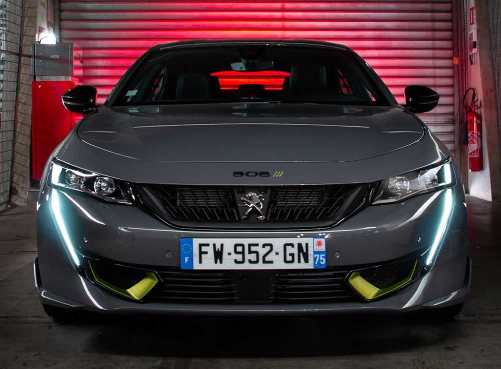 Передняя часть французского автомобиля получилась самой яркой. Она размещена невысоко, однако имеет довольно заметный наклон и получила украшения. Львиная их доля располагается на крайних частях капота. Передняя часть будто подводит взор к радиаторной решетке, которой досталась трапецеидальная форма. Внутри же нашлось место для мелкого рисунка, окрашенного в хром. Средняя часть обладает достаточно большим значком бренда. Peugeot 508 второго поколения может похвастаться теперь новыми светодиодными адаптивными фарами со спускающейся вниз линией.