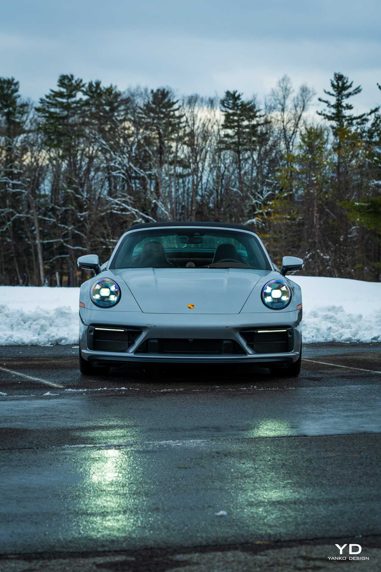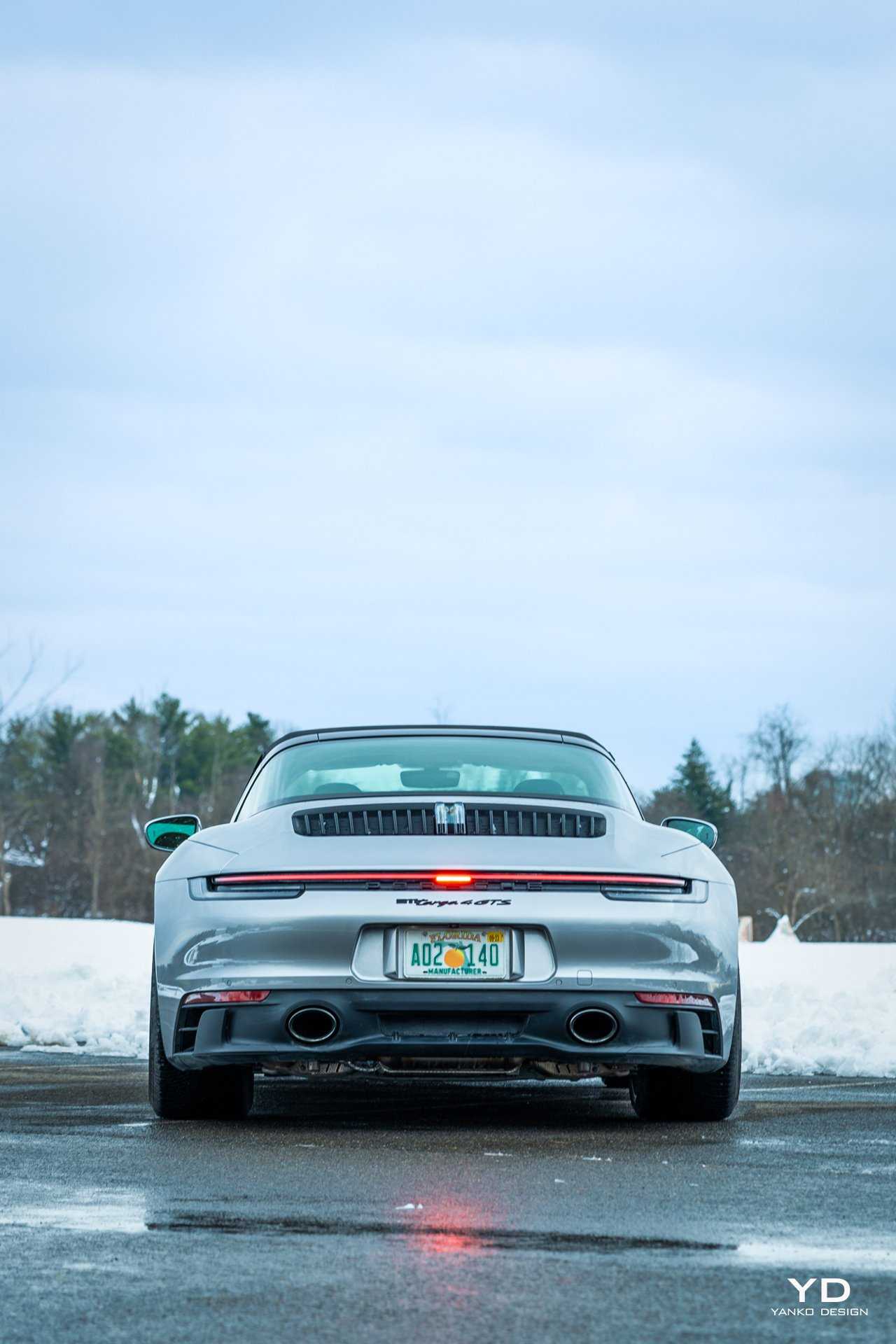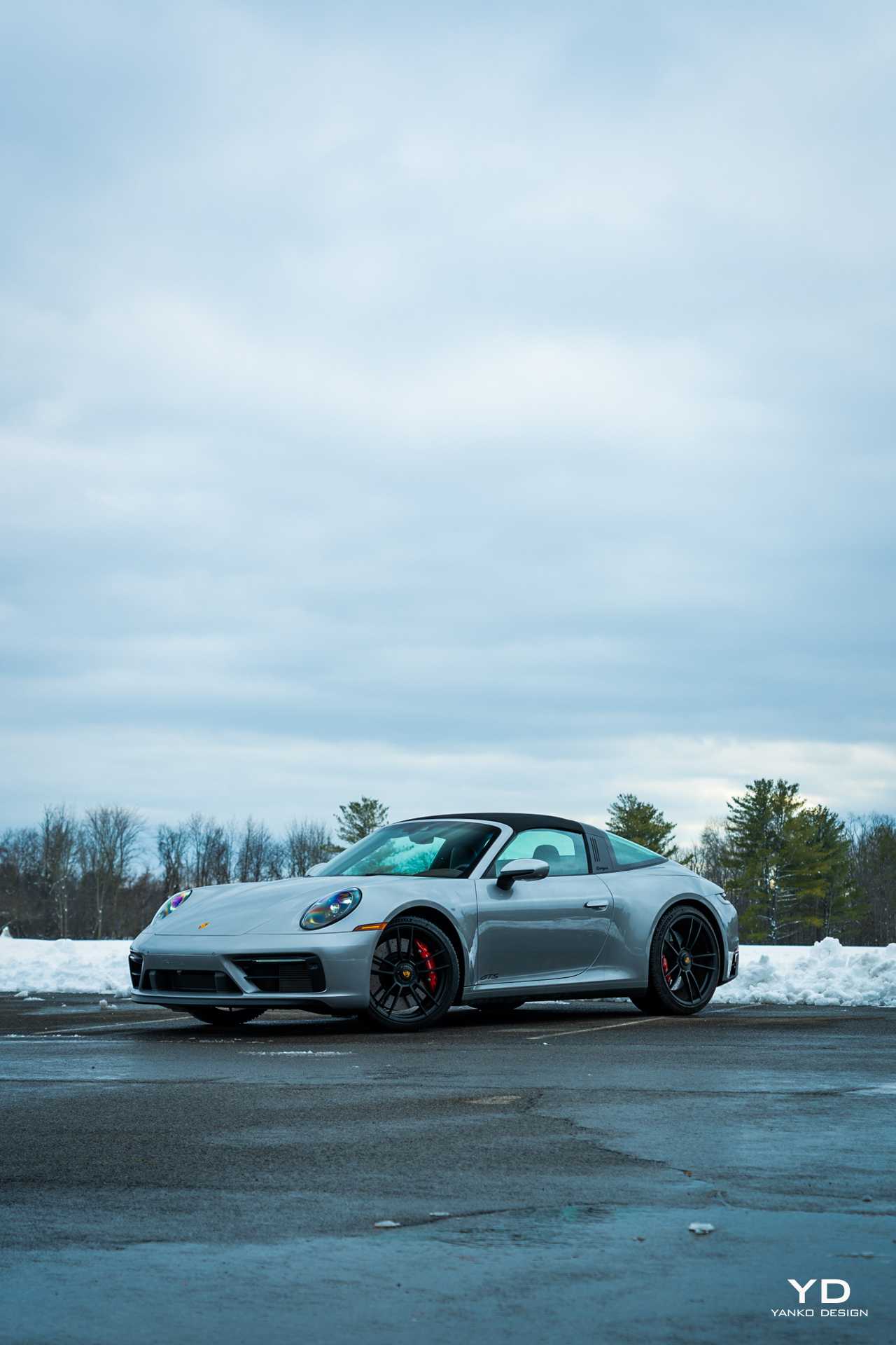 Roads were terribly icy when I tested the GTS you see here, wet and covered in road grime at the best of times, but the sure-footedness of Porsche’s all-wheel-drive system meant putting down the 473 horsepower and 420 pound-feet of torque from the 3.2-liter, twin-turbocharged flat six was never much of an issue. Sure, the tires spun up plenty of times and the car started to slip and slide on multiple occasions, but the Porsche Stability Management system always ensured that I never had to do more than make a slight correction to keep myself going in the right direction. The gigantic Michelin snow tires helped, too, without compromising the inherent feel of this car, a feel enlivened by the optional rear-steering system, which helped hide the Targa’s extra heft.