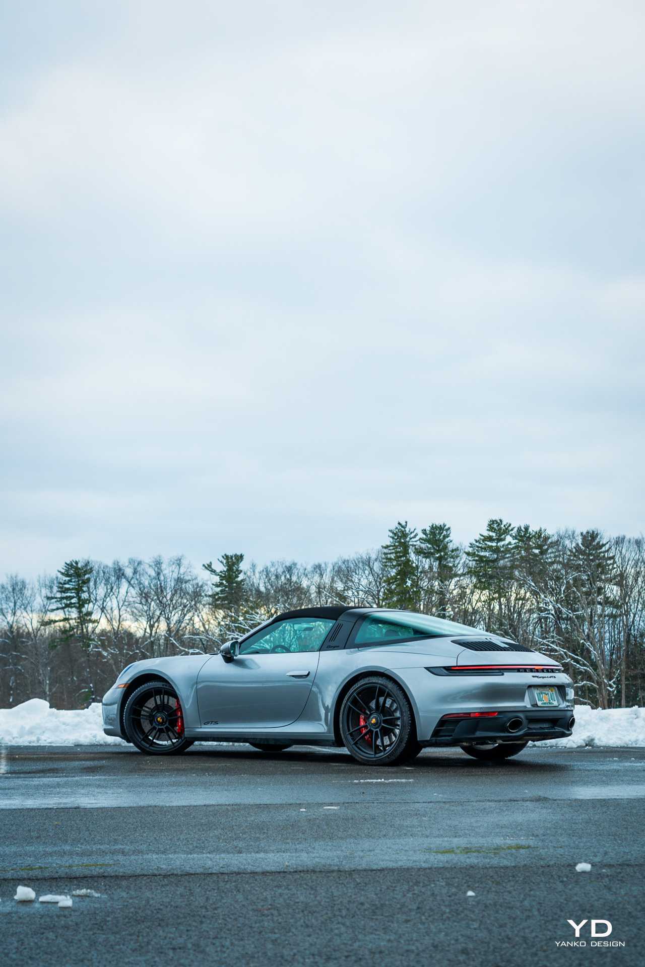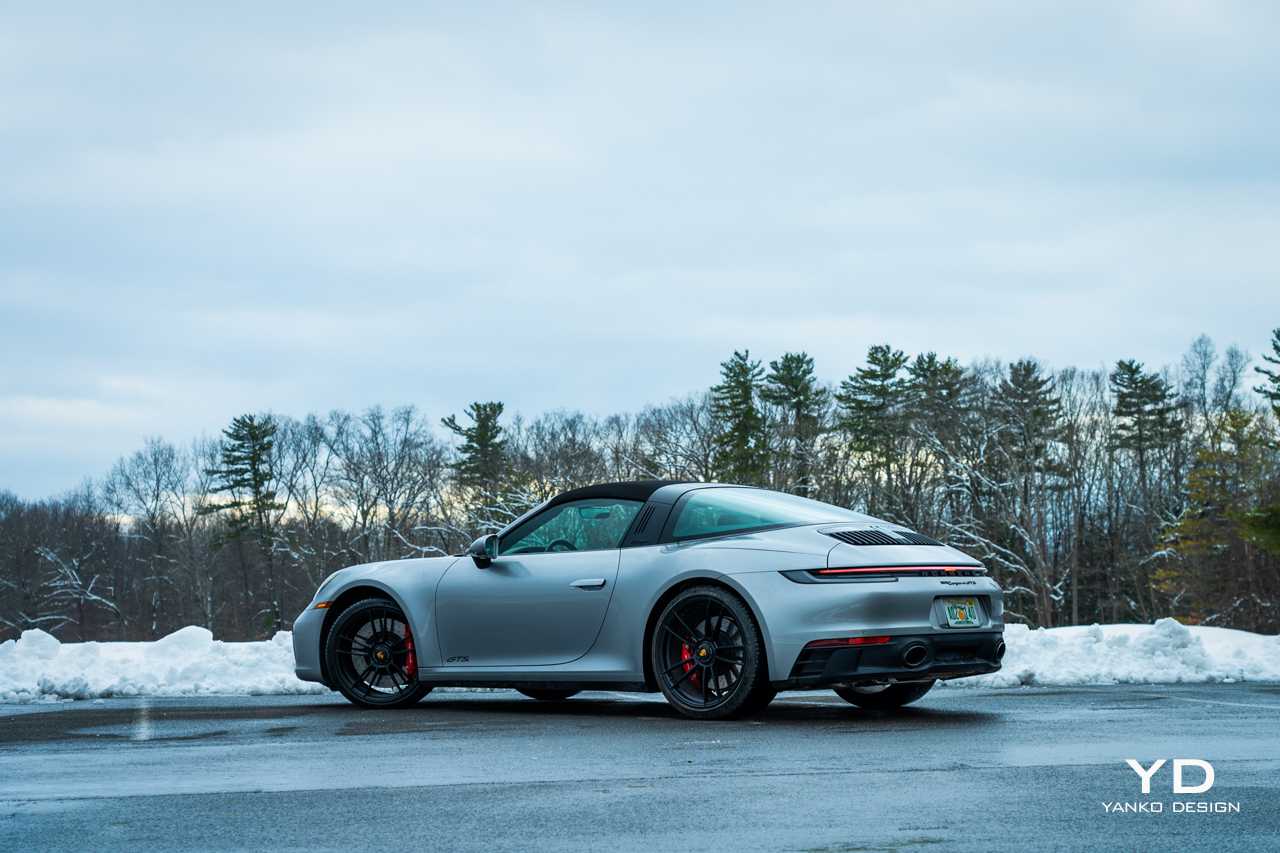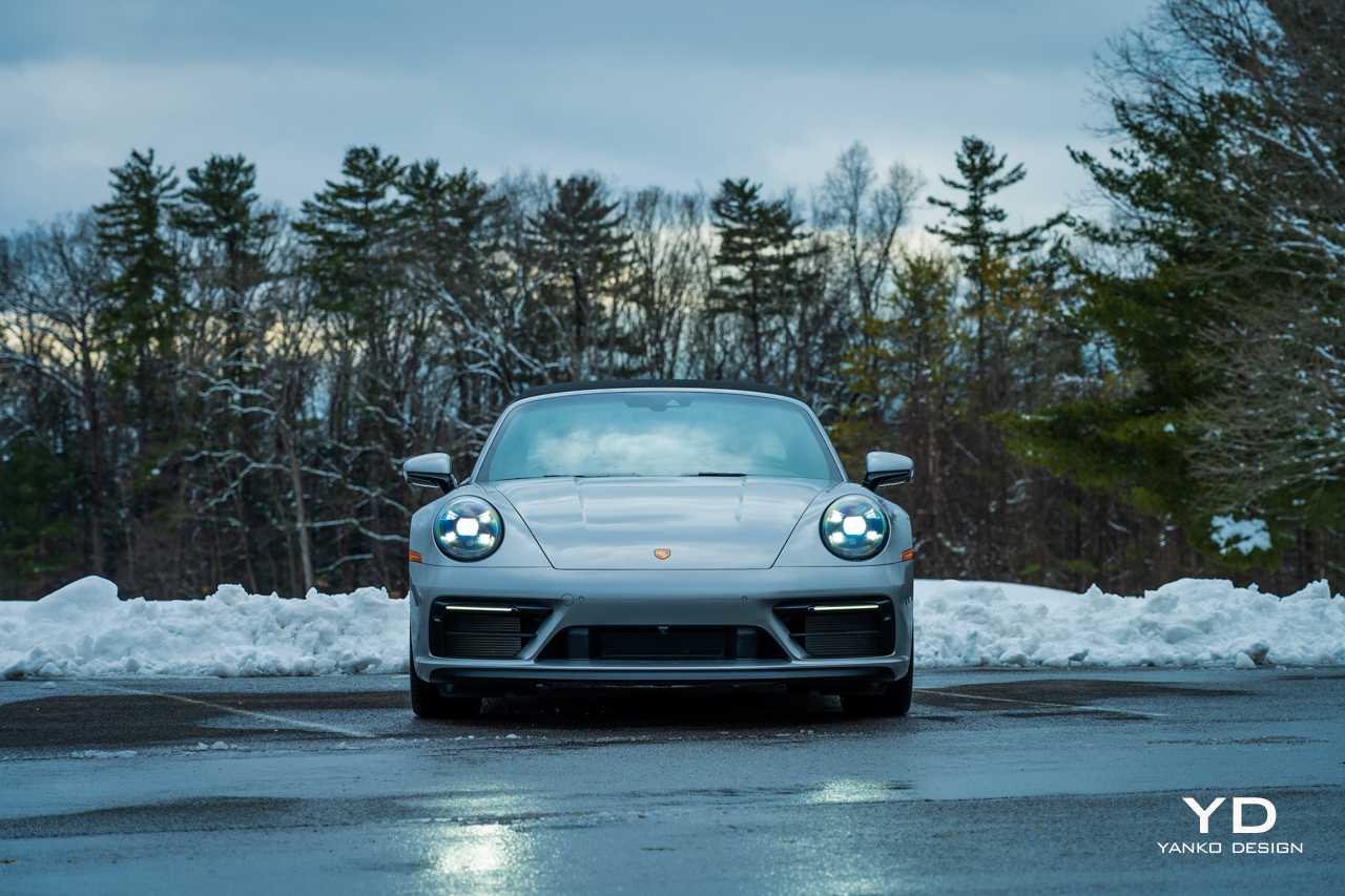 Roads were terribly icy when I tested the GTS you see here, wet and covered in road grime at the best of times, but the sure-footedness of Porsche’s all-wheel-drive system meant putting down the 473 horsepower and 420 pound-feet of torque from the 3.2-liter, twin-turbocharged flat six was never much of an issue. Sure, the tires spun up plenty of times and the car started to slip and slide on multiple occasions, but the Porsche Stability Management system always ensured that I never had to do more than make a slight correction to keep myself going in the right direction. The gigantic Michelin snow tires helped, too, without compromising the inherent feel of this car, a feel enlivened by the optional rear-steering system, which helped hide the Targa’s extra heft.