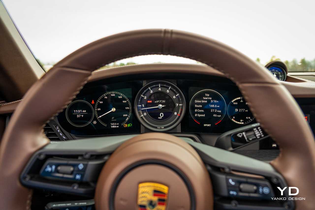 The 911 Targa 4 GTS you see here was quite well appointed. A $156,800 base MSRP rose to $181,610 thanks to that Truffle Brown interior ($6,040 plus another $1,490 for the 930 Leather Package and another $3,030 for the 18-way seats), $3,760 for the Premium Package (including a better Bose sound system and power folding mirrors), $2,090 for the rear-steering system, plus a few other odds and ends and $1,350 destination.