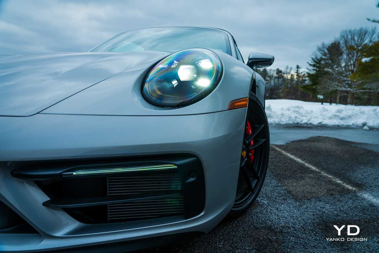 Ride quality is on the firm side but compliant when cruising, engaging and sharp when you want to drive the 911 hard. If there’s a flaw here it’s that the 911 GTS has so much grip, so much poise, that you really need to be moving to feel like you’re pushing the car at all. That’s one of the reasons why winter driving can be so much fun. Those limits are brought down to a level where you can approach them without risking your license.