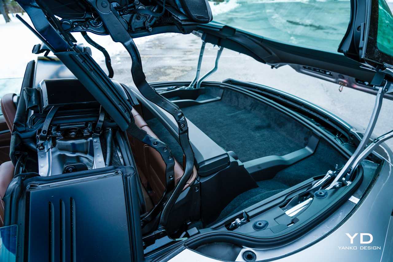 Likewise, another switch lifts the nose up to get over any troublesome piles of snow and ice, just a few features that make the 911 a sublime car for everyday drives. The Targa loses nothing in that regard. The main storage area, up under the hood, is exactly the same as on the coupe. 4.6 cubic feet isn’t a lot by GT standards, but it’s more than enough for a couple of overnight bags or TSA approved carry-ons. Anything more than that will need to fit in the rear seats.