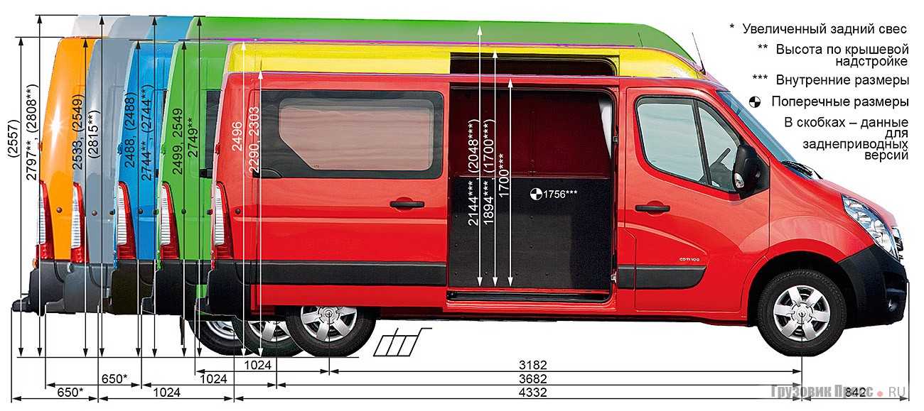 | Высота грузового отсека, мм | 1700/1894/2144 | 1798/2048 |