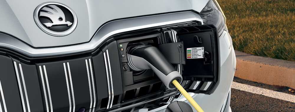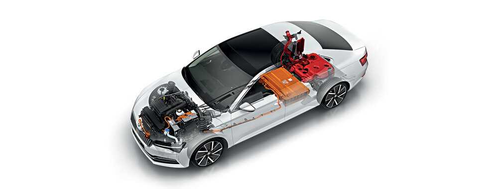 Гибрид Шкода-Суперб оснащается литийионной батареей, рассчитанной на емкость 13 кВт*час. Она располагается под сиденьями заднего ряда, а для зарядки батареи предусмотрен специальный выход под крышкой в радиаторной решетке. Подзаряжать машину можно от розетки или зарядки 3.6 киловатт мощностью. Для 100% заряда достаточно трех с половиной часов. Информация об остатке заряда отображается на мультимедийке приборной панели.