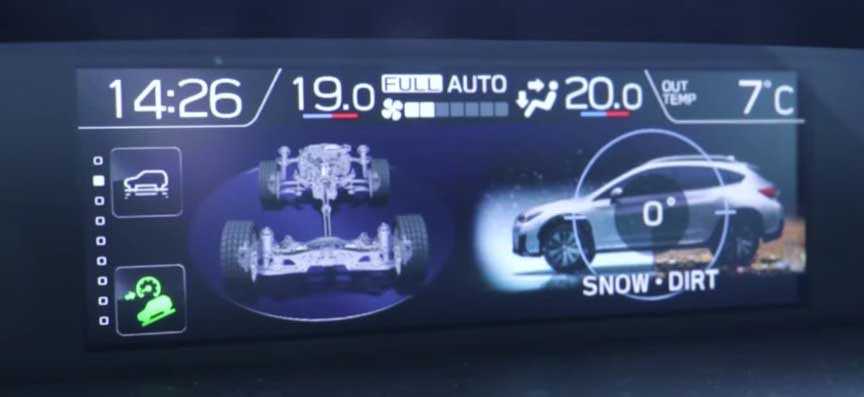 Над экраном располагается еще один дисплей, который, как и в Subaru Forester, отвечает практически за всё. Имея его, можно не обращать внимания на остальные мониторы, потому что он выдает информацию как по развлекательным системам, так и по бортовому компьютеру.