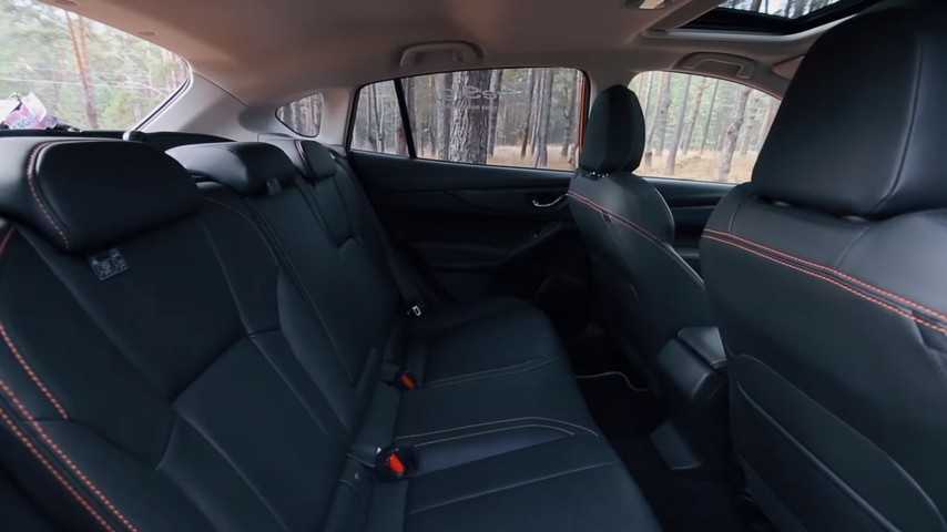 Задним пассажирам будет достаточно места для коленей даже при высоком росте, но все равно его меньше, чем в Subaru Forester. Спинка сидения мягкая, что добавляет комфорта во время езды. Но все это съедается отсутствием каких-либо привычных удобства, как дефлекторы обдува или розетки. Для удобства задних пассажиров есть только один карман из дерматина, подлокотник с двумя подстаканниками и отформованные сиденья для двоих. А также сделан очень высокий тоннель на полу, поэтому посадить сзади третьего пассажира будет крайне проблематично.
