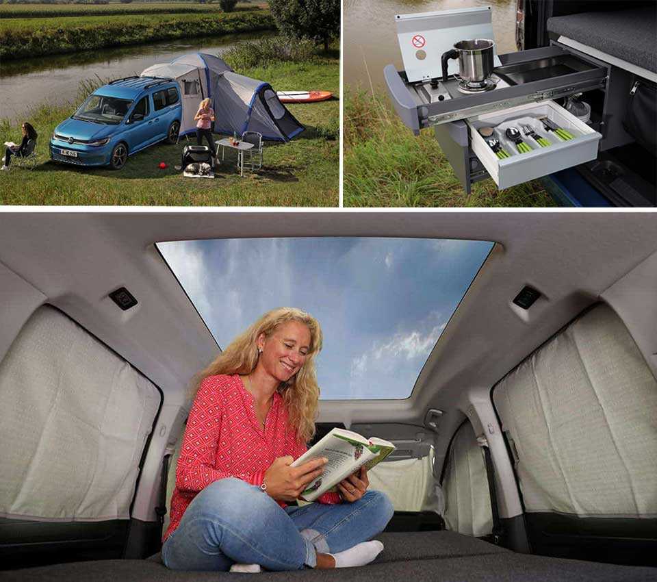 В дополнение к передовым цифровым системам, обновленный Caddy оснащен эргономичными сиденьями, подсветкой салона, кнопками, электрическими дверьми, розеткой на 230 вольт и большим панорамным люком на крыше площадью 1,4 м2. Набор из 19 электронных помощников включает шесть новых, в том числе Travel Assist (сочетает в себе активный круиз-контроль и отслеживание рядности движения) и Trailer Assist (облегчает маневры с прицепом).