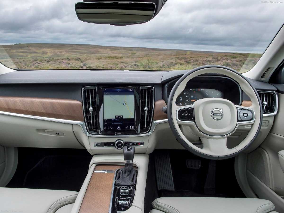 В салоне у S90 практически отсутствуют физические клавиши. Все управление бортовой электроникой ведется через вертикально расположенный сенсорный монитор. Шведской модели доступен широкий трансмиссионный тоннель, в задней части которого предусматривается отдельный блок климат-контроля. В отделке внутреннего пространства активно использовались кожа и дерево.