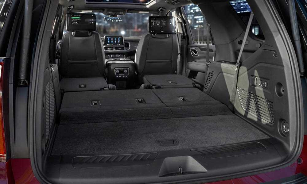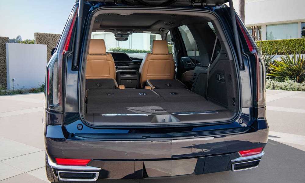 Объём багажника на Escalade больше. Это связано с отличием облицовочных элементов и наличием у Tahoe дополнительной ниши для инструментов внизу. Длина багажника зависит от того, сложены задние сидения или нет. Но даже при сложенном третьем ряде у Cadillac появляется очень большое преимущество.