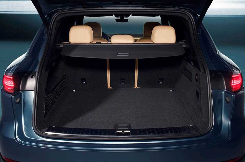 В стандартном положении багажник Porsche Cayenne вмещает в себя 770 литров багажа. Если опустить задний ряд, то получится площадка на 1710 литров.
