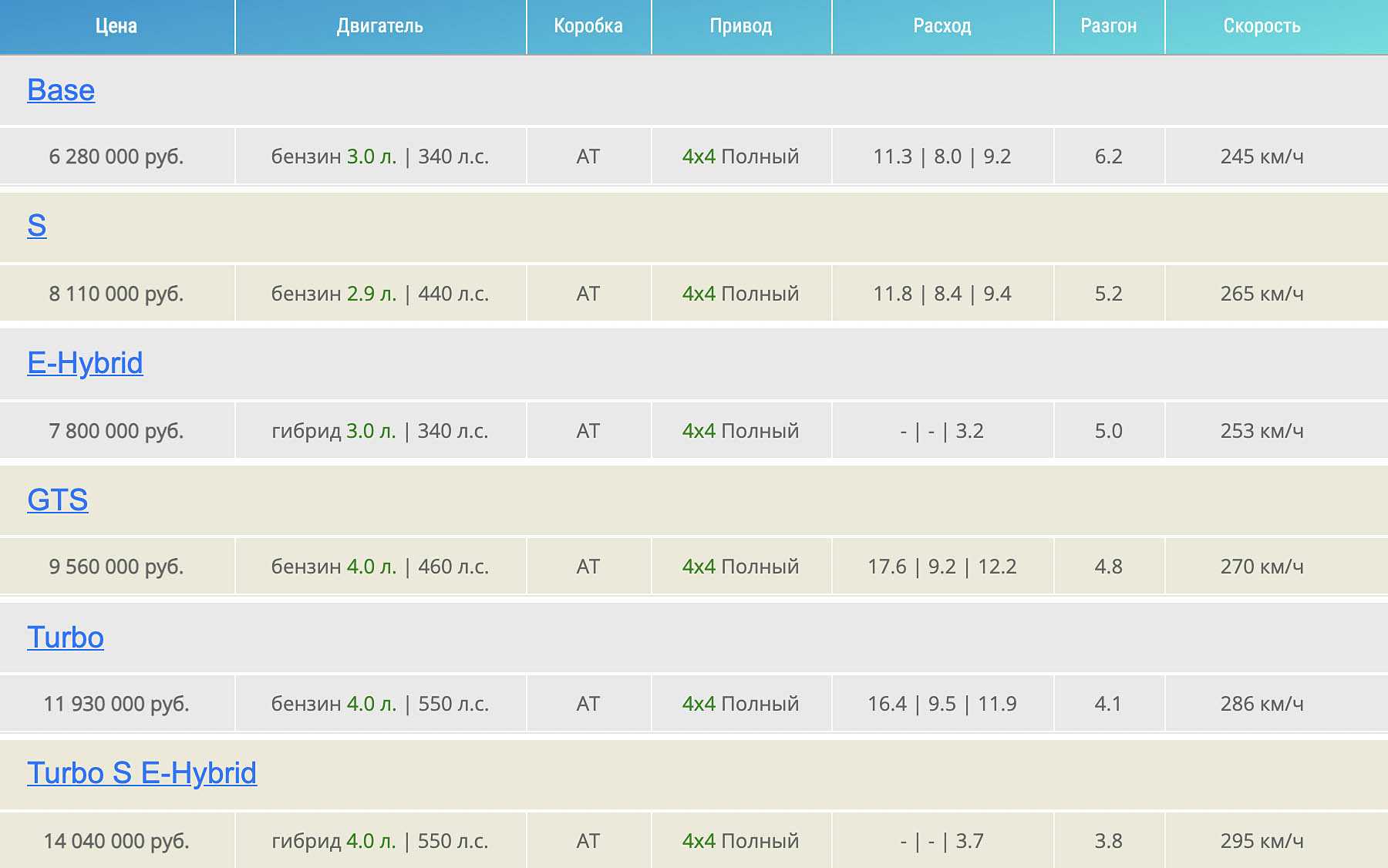 - Cayenne Turbo E-Hybrid. Самая продвинутая гибридная комплектация. Продаётся за «скромные» 14 миллионов рублей.
