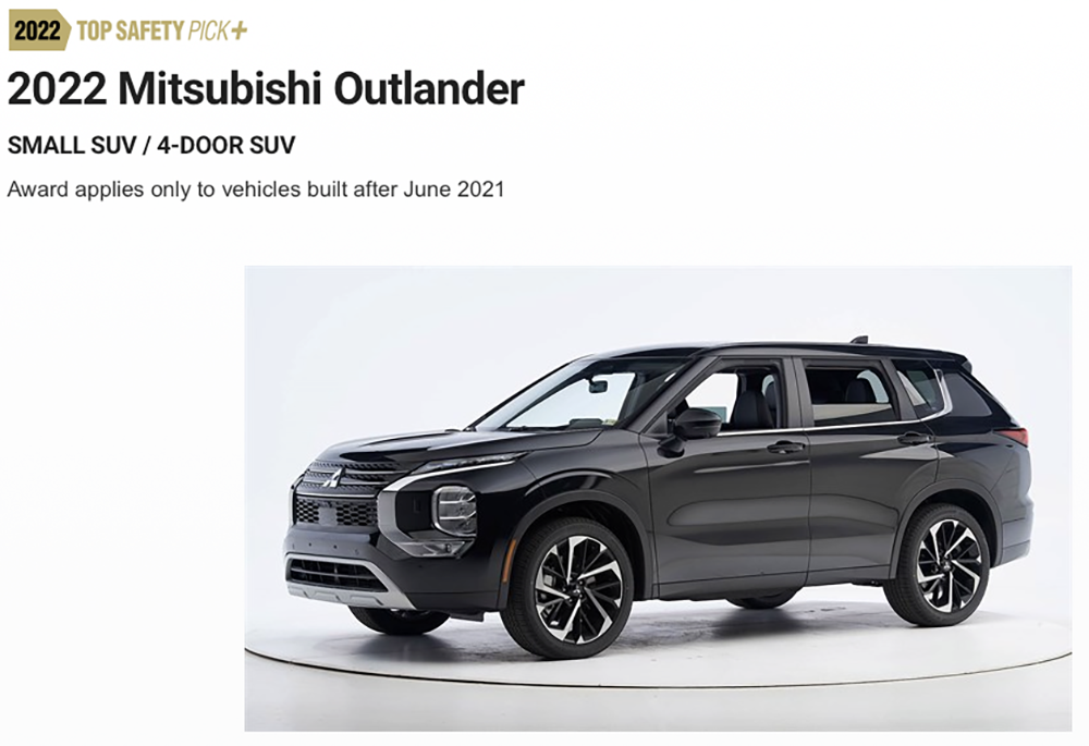 Мицубиси Аутлендер получил высшую награду за безопасность Top Safety Pick+