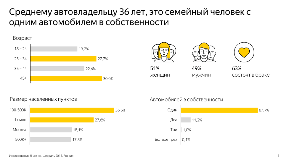 Чаще всего покупают машину жители городов с населением 100 000 — 500 000 человек, как правило, это люди с одним автомобилем, состоящие в браке.
