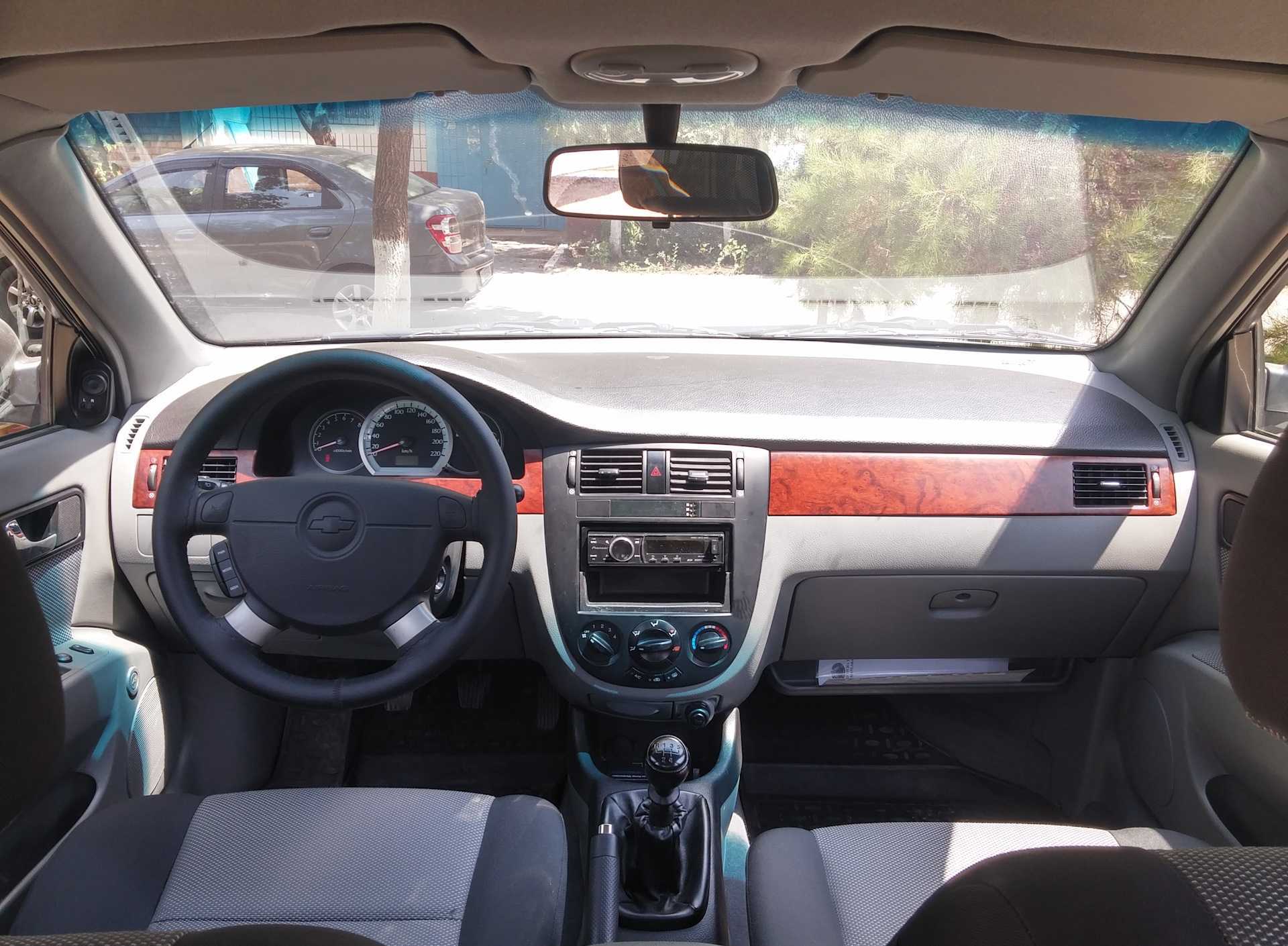 Lacetti внутри обит светло-серым материалом. В зависимости от комплектации это может быть ткань, кожзам и пластик, либо же натуральная кожа. Мультимедийная система тоже есть, но без дисплея, руль обычный, но очень удачно расположен: не мешает следить за показателями приборов. Так же продуманно размещены кнопки и рычаги – до любой из них очень легко дотянуться, не отвлекая внимания от дороги. В салоне комфортно устроятся четыре взрослых человека и ребенок.