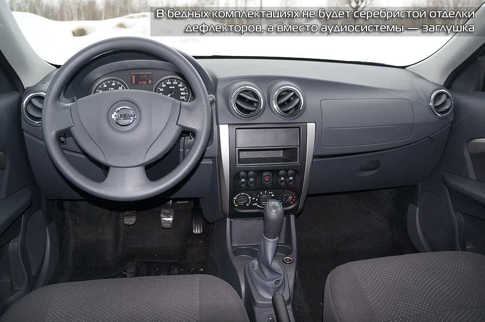 Как уже говорилось выше, салон Альмеры сильно напоминает Рено Логан. Та же приборная панель, схожий вид всей торпеды, даже сиденья доставляют практически тот же уровень комфорта, что и французская модель. Единственное преимущество перед российской Вестой – пространства для пассажиров на задних сиденьях будет незначительно больше.