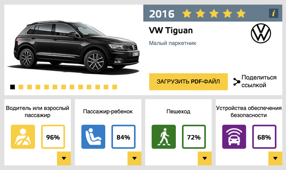 Результаты краш-тестов: Euro NCAP, 2015 — 5 звезд; IIHS, 2021 — Top Safety Pick