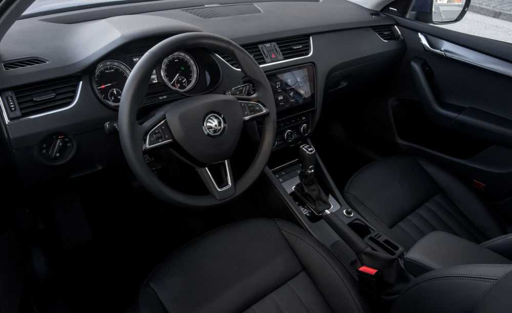 Интерьер Skoda Octavia вполне современен, радует не только удачная компоновка торпедо, но и её мягкая обивка. Понравится покупателям и возможность выбора из нескольких вариантов обивки, а также трёх- или четырёхспицевого вариантов руля, на который были перенесены некоторые клавиши управления. Общее впечатление от оформления салона – исключительно положительное. Широкая центральная консоль позволила разместить большой мультимедийный дисплей. Верхняя часть торпедо и боковой линии дверей обрамлена тёмным пластиком, придающим облику салона мягкого благородства. Радует Octavia и обилием ниш для хранения мелочёвки, в том числе обязательных нынче мобильных гаджетов.