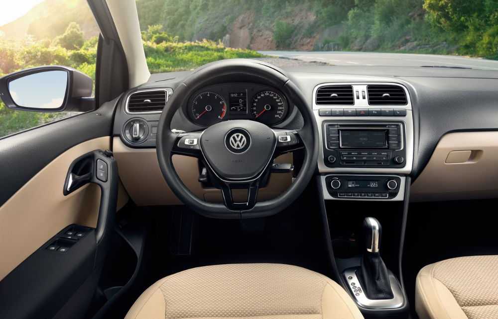 Интерьер Polo в этом аспекте выглядит немного аскетично. Правда, рули у обоих седанов практически одинаковые, различаясь только набором клавиш на боковых спицах. Немного оживляют общее впечатление вставки под хром, но приверженность традициям и ориентация на ретро-стиль здесь проглядывается во всём. Правда, эргономика здесь на высоте: всё просчитано с точностью до микрона. Но даже если имеются мелочи, требующие привыкания (например, расположение на дверной ручке джойстика управления наружным зеркалом или клавиши управления круиз-контролем на подрулевом лепестке), то такая адаптация протекает очень быстро, и в дальнейшем управление автомобилем может осуществляться вслепую.