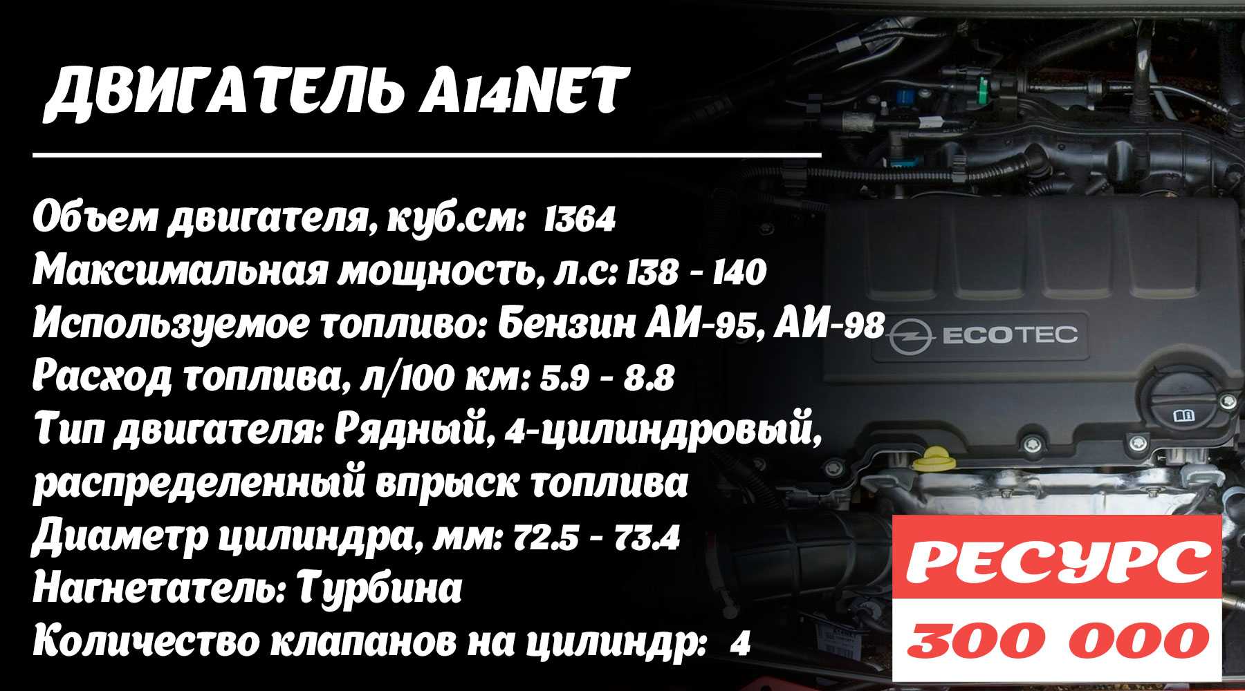 По своей конструкции турбированный 1.4-литровый A14NET – полная идентичность LUJ. Все тот же алюминиевый блок цилиндров и 16-клапанная головка. Турбина на 0.5 бар, которая позволяет мотору вытягивать 140 лошадиных сил при небольшом рабочем объёме агрегата – 1.4 литра. Кажется, что подобный двигатель – само совершенство. Он экономичный, тяговитый, обеспечивает необходимую динамичность автомобилю и обладает хорошим ресурсом. Но на практике дела обстоят чуть иначе. Мотор требователен к качеству моторного масла, поэтому нужно лить только официальное, рекомендованное производителем смазочное вещество. Чтобы выработать весь заложенный в движок потенциал, придется ездить аккуратно и размеренно. Агрессивный стиль езды очень пагубно сказывается на общем состоянии двигателя, турбины в частности.