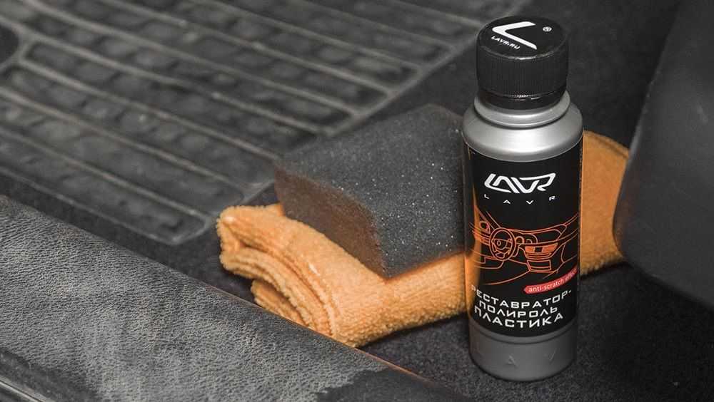 Полироль-реставратор пластика Lavr поможет не только отполировать, но и восстановить пластик в салоне авто, устранив незначительные повреждения. Средство, разработанное отечественными химиками, имеет уникальную формулу, позволяющую надолго и хорошо маскировать царапины на пластиковых панелях внутри машины. Кроме того, оно обеспечивает эффективную и длительную защиту от образования новых дефектов, а также снижает вероятность загрязнения. После обработки этим составом детали выглядят практически как новые. Конечно, чуда от него ждать не стоит. Препарат не способен убрать серьёзные недостатки поверхности. С этим не справится ни одна современная полироль, даже самая дорогая и профессиональная. Но эффективность данного состава проверена многими российскими автовладельцами. При этом профессиональных тестов его не было, но визуальный результат очевиден и сохраняется довольно долго. При этом химия очень дешёвая и экономичная. Она стоит около 200 рублей. Одного флакона хватает примерно на 10 процедур.
