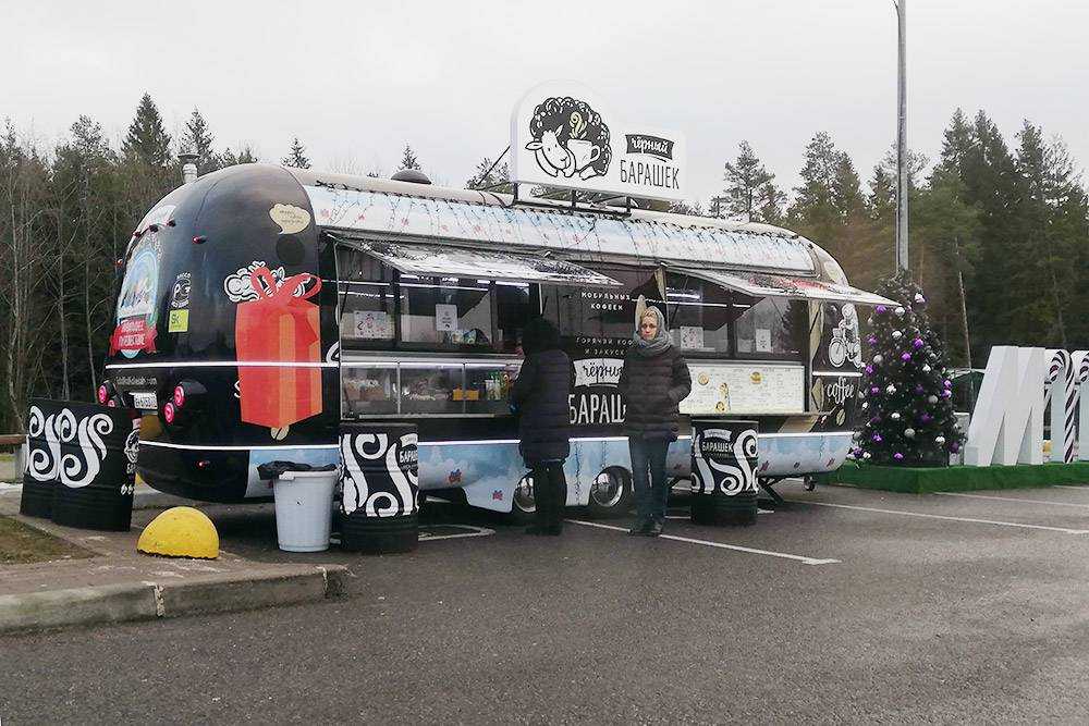 Фудтрак «Черный барашек» расположен на трассе по дороге из Москвы в Санкт-Петербург. На обратном пути я подобных точек не заметила