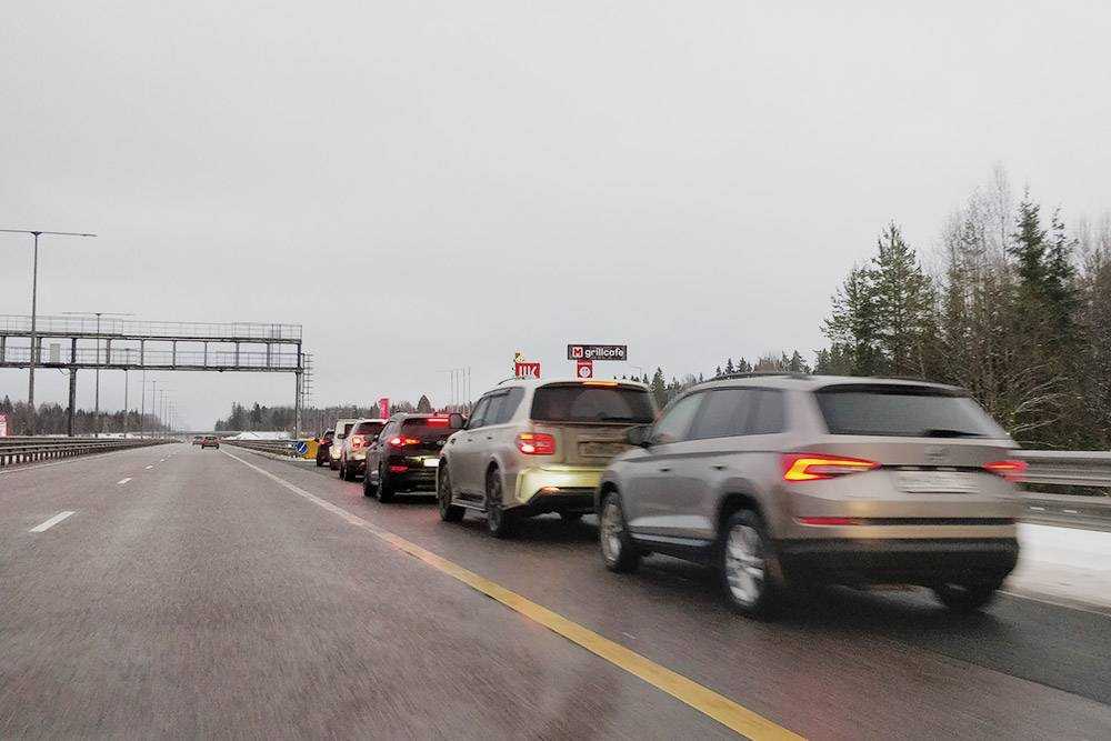 Разрешенная скорость на трассе М11 — 110 км/ч, но на некоторых участках можно разгоняться до 130 км/ч — ограничения указаны на дорожных знаках и на электронных табло. Так как трасса платная, за ней внимательно следят, поэтому ям и трещин на дорожном полотне мы не заметили. Большую часть пути мы ехали на круиз-контроле с постоянной скоростью 115 км/ч. Вот какие моменты мы еще отметили по пути.