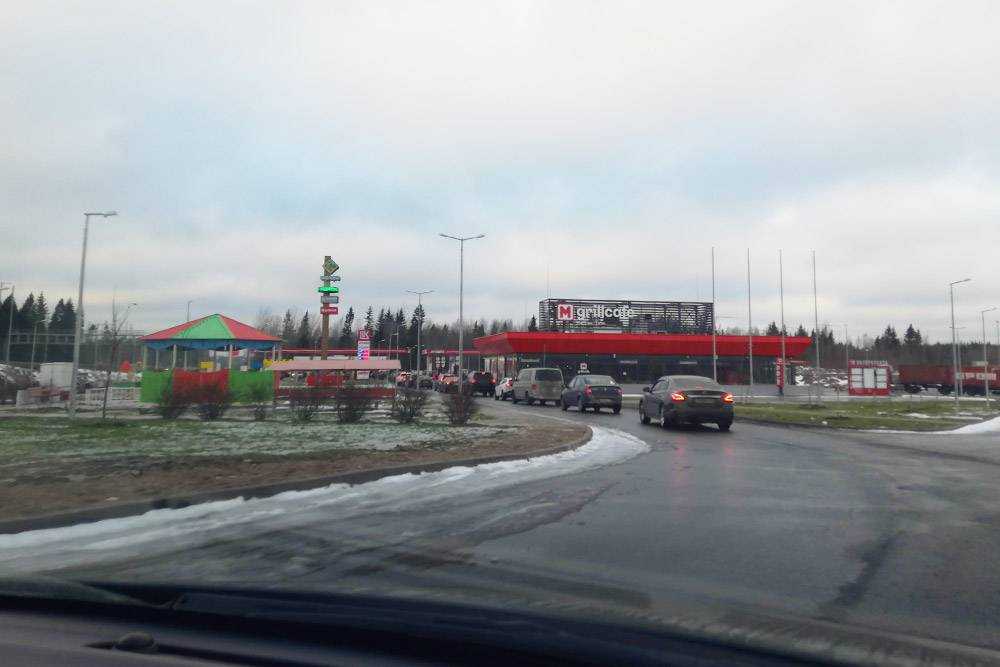 Когда мы ехали по М11, первую треть пути многие водители соседних автомобилей, что называется, «жарили»: изо всех сил давили на газ. Машины по левой полосе пролетали со свистом. Поэтому уже в середине пути на первых контейнерных заправках начали встречаться очереди из 5—6 машин. Потом их становилось все больше и больше — настолько, что очередь уже вылезала из заправочных карманов на саму трассу. Максимум, что я насчитала, — 16 машин.