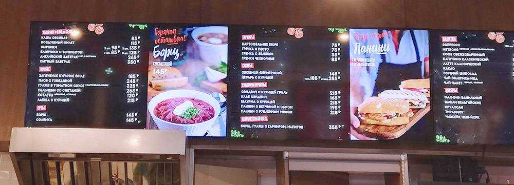 В 2022 году шаурма с напитком стоит там 295 Р, а порция борща — 150 Р. В продаже завтраки, супы, салаты, горячее и даже пицца.