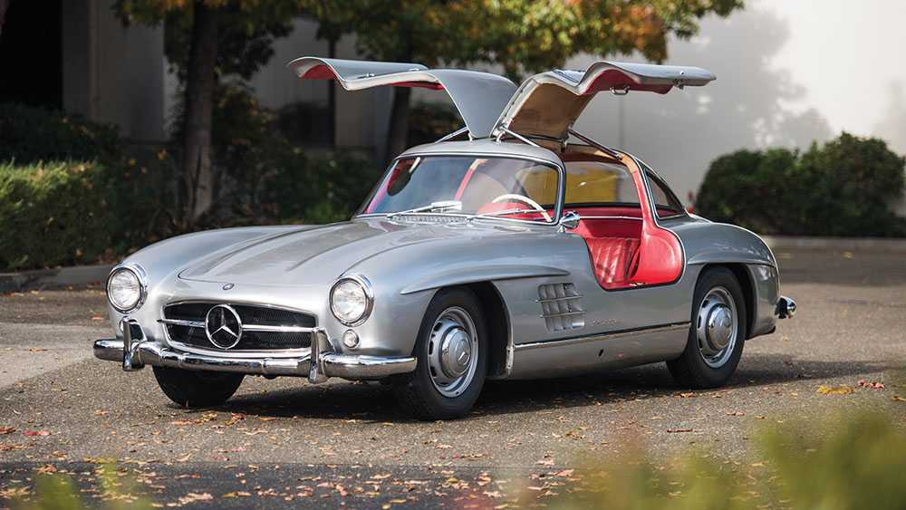 Этот автомобиль очень понравится ценителям раритетного автопрома. Кузов модели Mercedes 300SL Gullwing просто поражает своей красотой, ведь он выполнен в стилистике чайки. Двери, которые распахиваются вверх будто крылья, — главная особенность данного авто.
