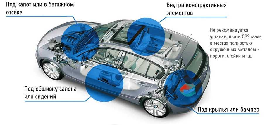 Лучшее место для установки навигационной системы – неочевидное. Угонщик попытается найти метку и деактивировать. Постарайтесь сделать так, чтобы он не обнаружил устройство.
