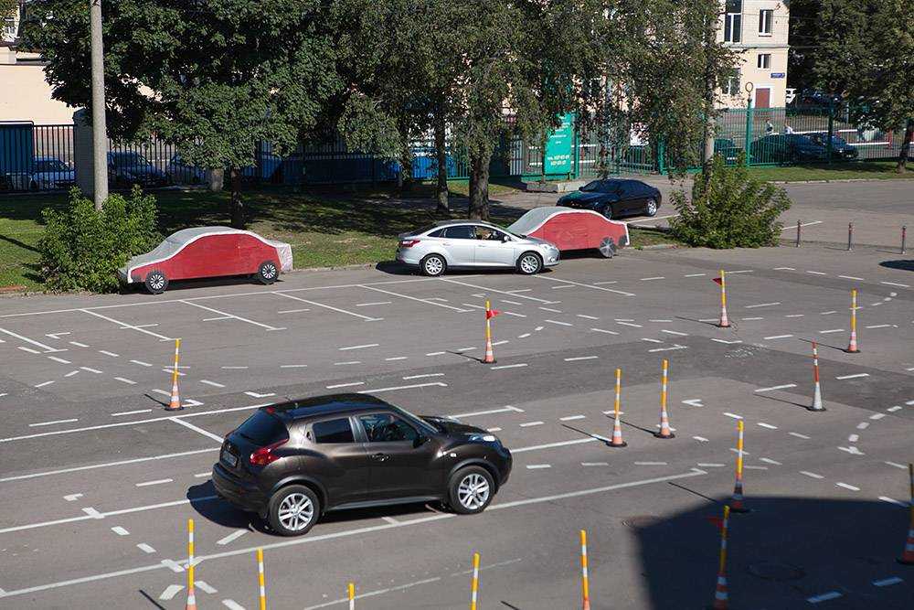 Сначала водители тренируются на площадке: в роли препятствий здесь выступают не только цветные конусы, но и полноразмерные макеты автомобилей. Такой способ обучения поможет чувствовать себя увереннее, когда водитель попадет в город и окажется среди настоящих машин.