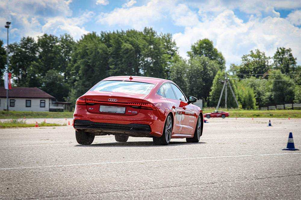 Для занятий предоставляют автомобили Ауди: A4, A5, Sportback, A6, A7 Sportback, Q7, Q8, Q5. Если хочется прокатиться на конкретной модели, ее можно забронировать заранее на сайте или по телефону. На время тренировок во всех машинах отключают систему стабилизации курсовой устойчивости автомобиля ESC: так водители лучше научатся полагаться на свои навыки, а не на помощь техники.